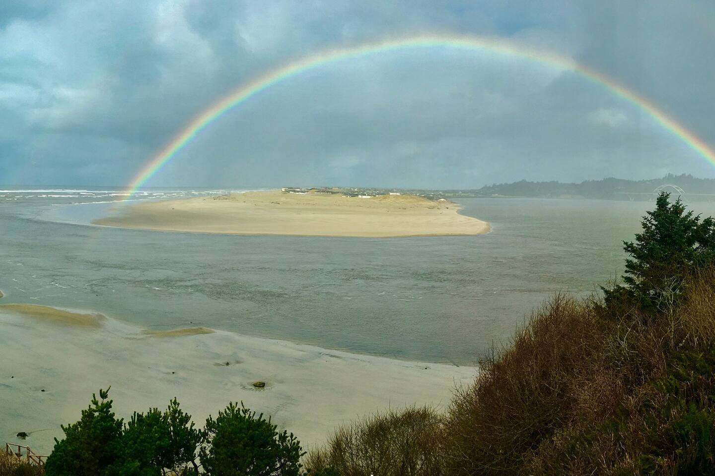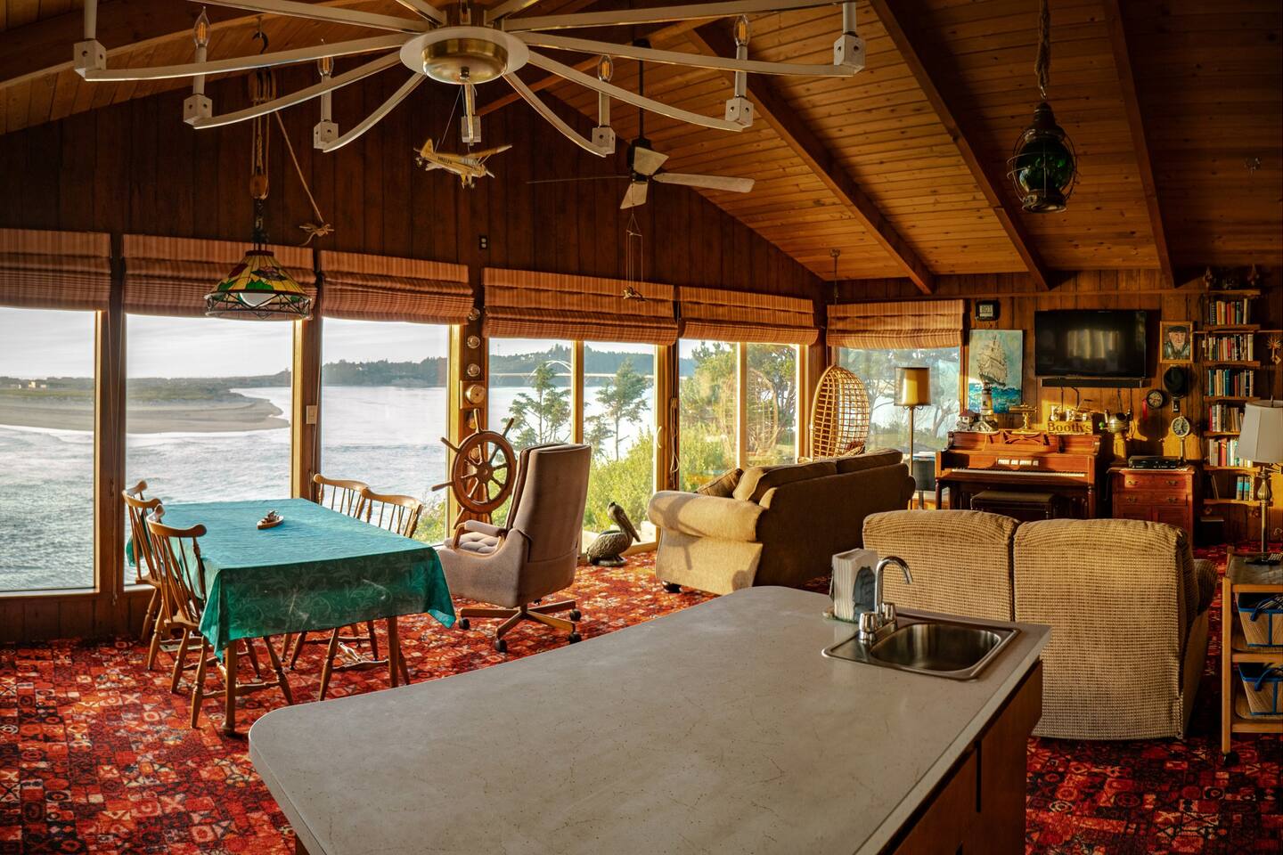 The Bay View Beachhouse is the epitome of oceanfront. With a 270 degree view of the Pacific Ocean, Alsea Bay, and the town of Waldport all from the private "deck of your ship" which is the main living space. The house decor has a charming nautical theme and cozy vibe with an open common-space floorplan. The view, the private stairs directly to the beach, pet-friendliness, and beach toys to borrow will make for an unforgettable experience.