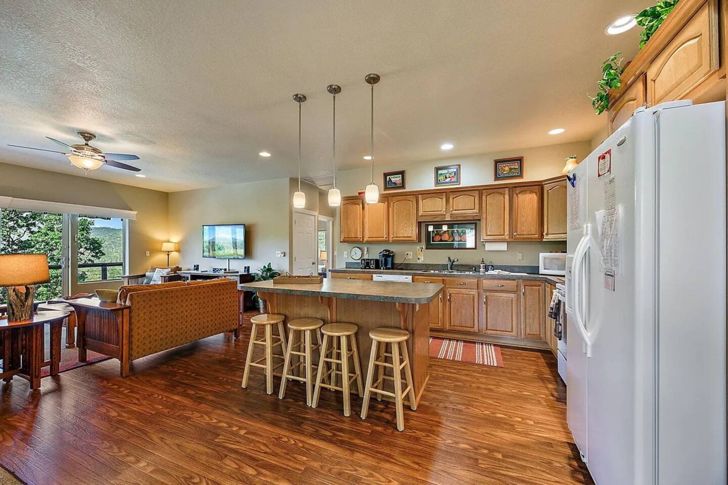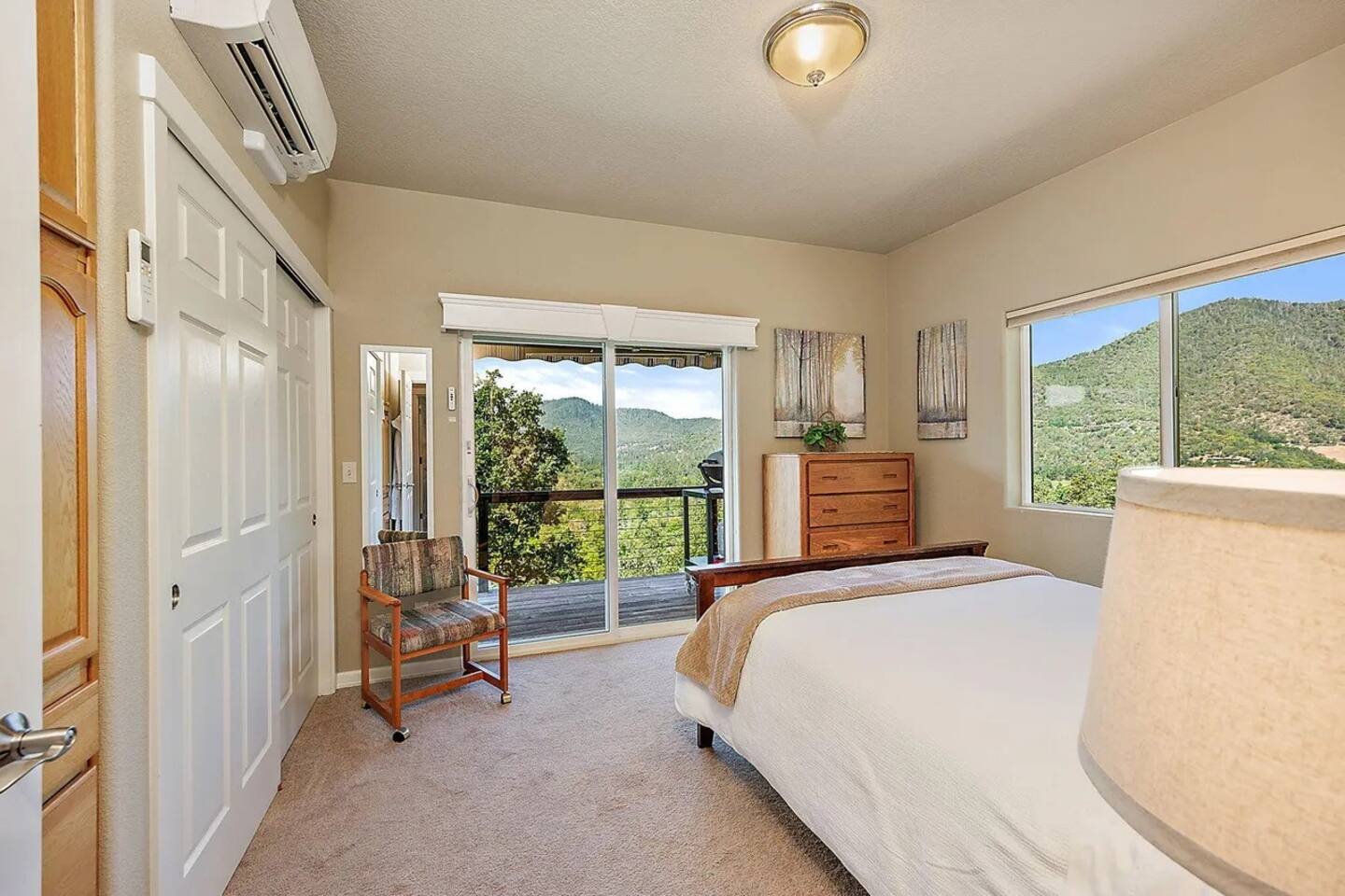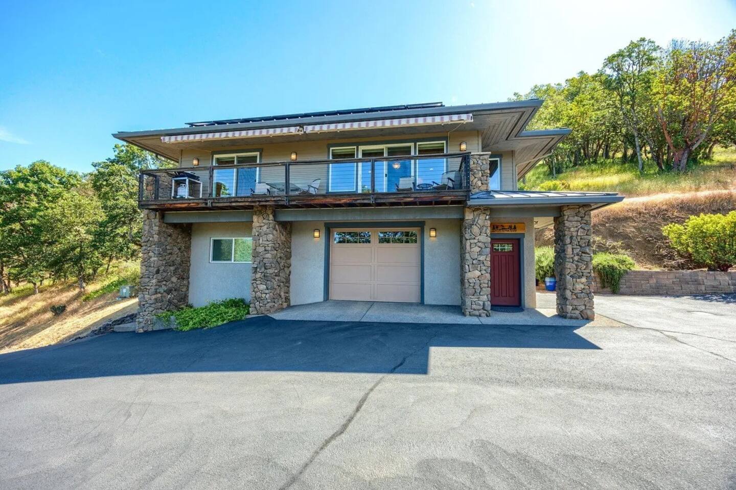 Gateway to Recreation & Entertainment Guesthouse is close to I-5 and a gateway to outdoor recreation including nearby Rogue River public access. Public access to river in Gold Hill Park. Stargaze from the deck. Enjoy local attractions at Ashland Shakespeare Theater, Britt Music Festival, exceptional nearby local wineries, exciting river rafting, zipline adventure, premier golfing, Crater Lake(73 mi.), Jacksonville (16.5 mi.), Medford (18 mi.), Grants Pass (22 mi.), Eagle Point (16 mi.), Shady Cove (17 mi.), Central Point (8 miles), Gold hill (5 mi.). Most areas 15-20 min drive. Great central location in a safe, rural location. Amenities Propane BBQ on deck overlooking river with a fully stocked kitchen. Individual AC/heat in each room for your comfort! Wireless internet with dedicated gateway in guesthouse (TMobile Home Internet). Speeds can vary due to rural location but generally OK for remote work. Netflix and Satellite Basic Dish TV/Verizon cell towers in direct line across river. Pet Friendly We welcome your dog with prior permission! There is a $55 per pet fee. Limited to 2 medium size (50 lb max) dogs with prior approval. Health & Safety Guidelines (Important to read prior to booking) Our cleaners deep clean/disinfect all surfaces between guests and wash/sanitize all linens. We follow Airbnb COVID 19 cleaning protocol. The health and safety of our guests and cleaning crew is our priority. We value our housekeeping crew and provide a living wage. Please ask us if you have concerns about cleaning protocol. Environmentally friendly In Spring 2022 we installed a solar photovoltaic system that is designed to generate all of the power needed by guests--therefore providing a carbon-neutral stay from an electricity usage perspective! This system will provide all the energy needed to operate the stove, heat water for your showers, run the air conditioner or the heating unit, watch tv, keep the lights on, charge your batteries, and meet all your other electricity needs using clean energy from the sun. This added benefit to you is in keeping with the environmental ethos of Stay Cascadia. EV charging available on premises. Please ask for details. Additional Guidelines / Important Information Our maximum occupancy permit is 4 guests total. The guesthouse is 1000 sq ft. with a balcony overlooking the Rogue River. The space is not suitable for events, gatherings or children under 12. For our guests safety and due to our rural forested location and fire danger, fireworks, firearms and smoking or vaping are not permitted anywhere on the property. Our guesthouse is smoke free for your health and safety. Book now to enjoy a peaceful, quiet, relaxing vacation with the sounds of the river soothing you to sleep. Gaze at the constellations and shooting stars in the dark night sky from the balcony. Our rural location allows sightings of local wildlife including many bird species, turkeys, deer and forest critters. Outside guests are welcome to visit until 10 p.m. Person making reservation must be on premises-no third party bookings. RV parking possible with prior approval due to rural driveway. Enclosed stairway to second floor guesthouse is not handicap accessible. Garage under guesthouse is private. Due to covid cleaning protocol, we provide linens for the number of guests registered on your reservation. Local Knowledge Owners on site to meet your needs. Reserve now to make yourself at home! We have lived in the area 35 years so local knowledge at your request. Please ask if you have any questions prior to booking. We try to accommodate our guests for an enjoyable and comfortable experience. Your privacy is respected while a guest. Host residence is 80 ft. from guesthouse. Both buildings face the river and you will rarely see hosts unless using driveway. Hosts are available to make your stay comfortable. We are a county permitted BNB and abide by the terms of our permit. The above House Rules are for the safety, health, and comfort of our guests, cleaning crew, and neighbors.